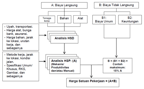 Tata cara penyusunan yang dilakukan adalah untuk mendapatkan indeks atau koefisien yang merupakan dasar untuk menghitung analisis biaya kegiatan atau harga satuan pokok kegiatan (HSPK). Dasar acuan yang digunakan dalam analisis perhitungan adalah referensi yang merupakan hasil penelitian di lapangan dan di Laboratorium, pendapat ahli dan data histori. Beberapa hal yang dibahas dalam analisis perhitungan meliputi tata cara perhitungan indeks bahan, upah dan peralatan bidang pekerjaan fisik.